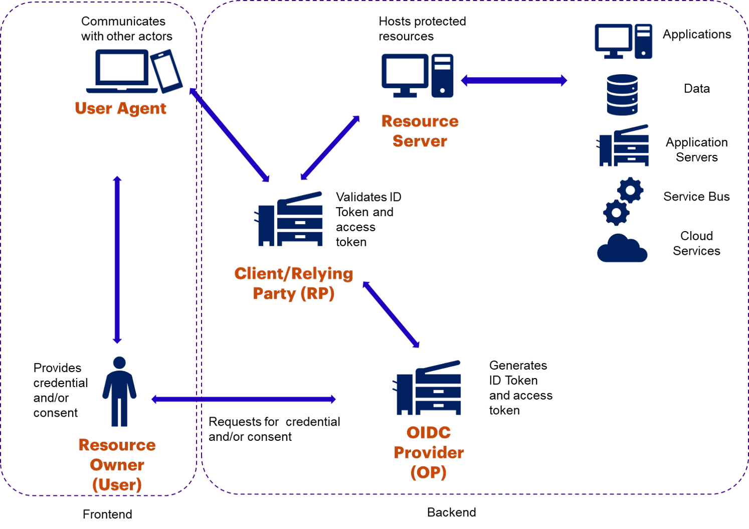 There are several actors involved in the Open ID Connect protocol. The following sections will detail each actor involved in the communication.