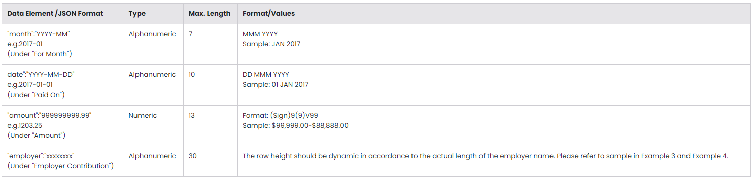 Organisations whose digital services are consuming employment related CPF Contribution History via Myinfo, will need to take note of the following points when designing the display of CPF contributions in their digital services. CPF data are retrieved real-time (as at the point of retrieval).