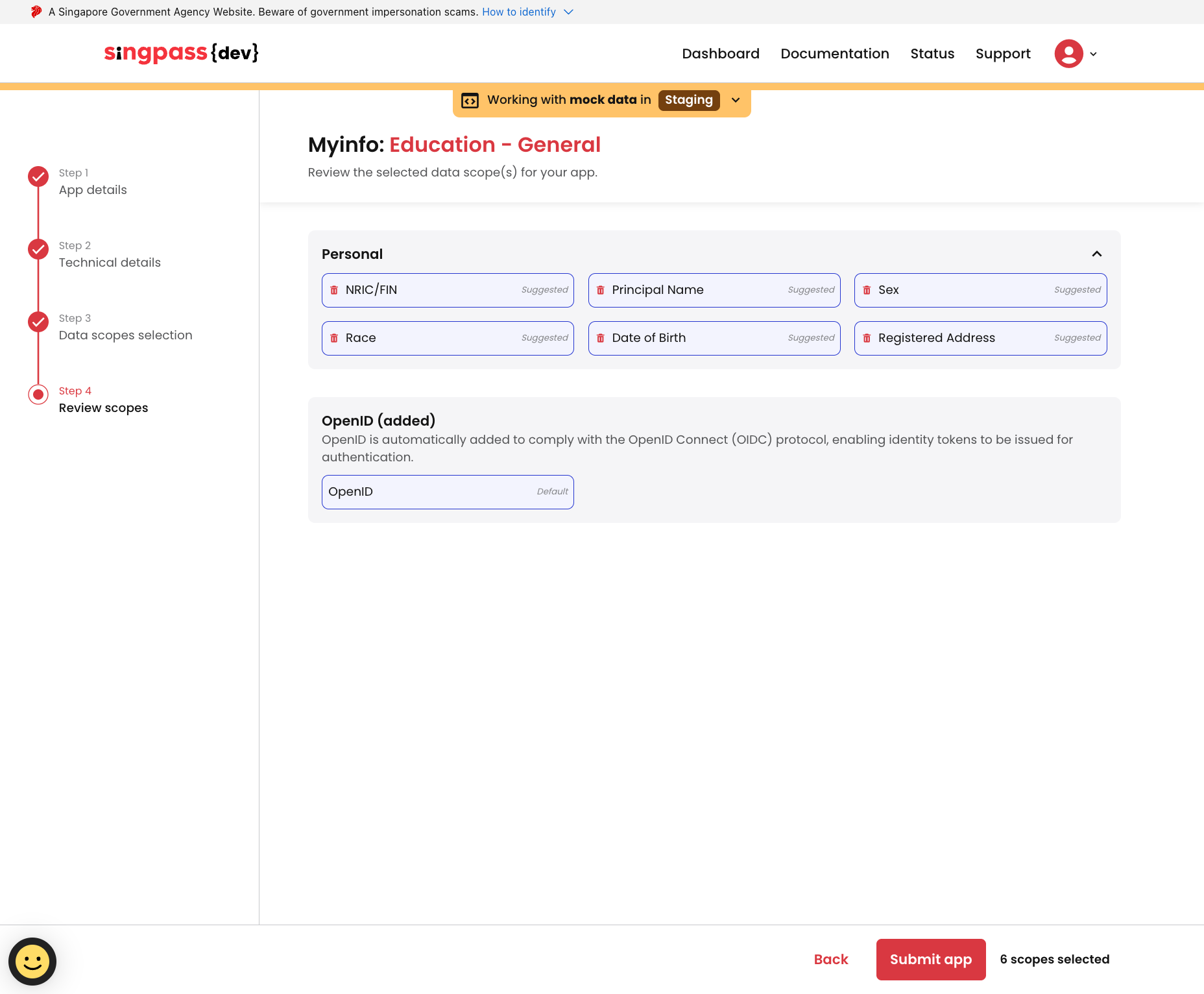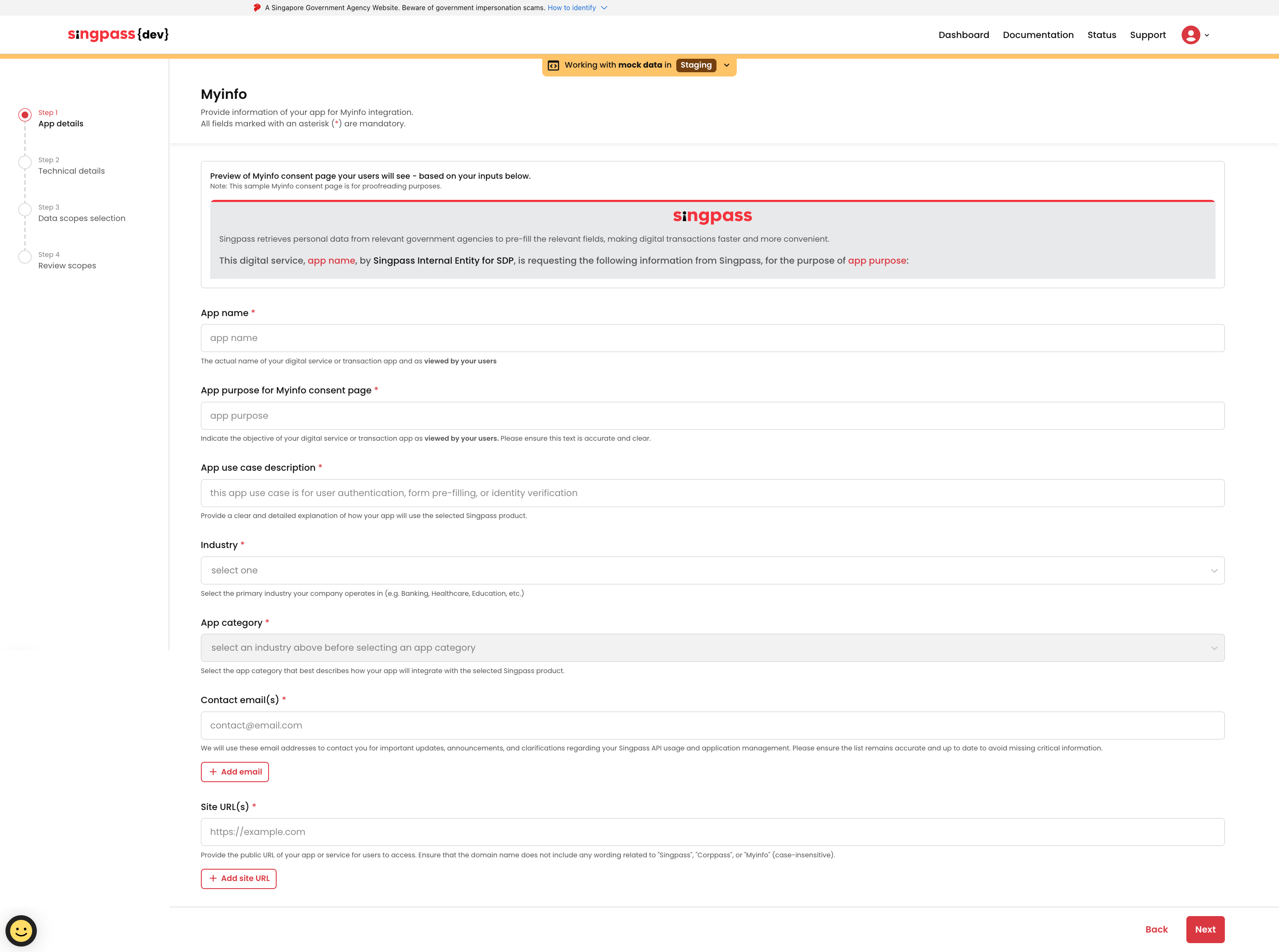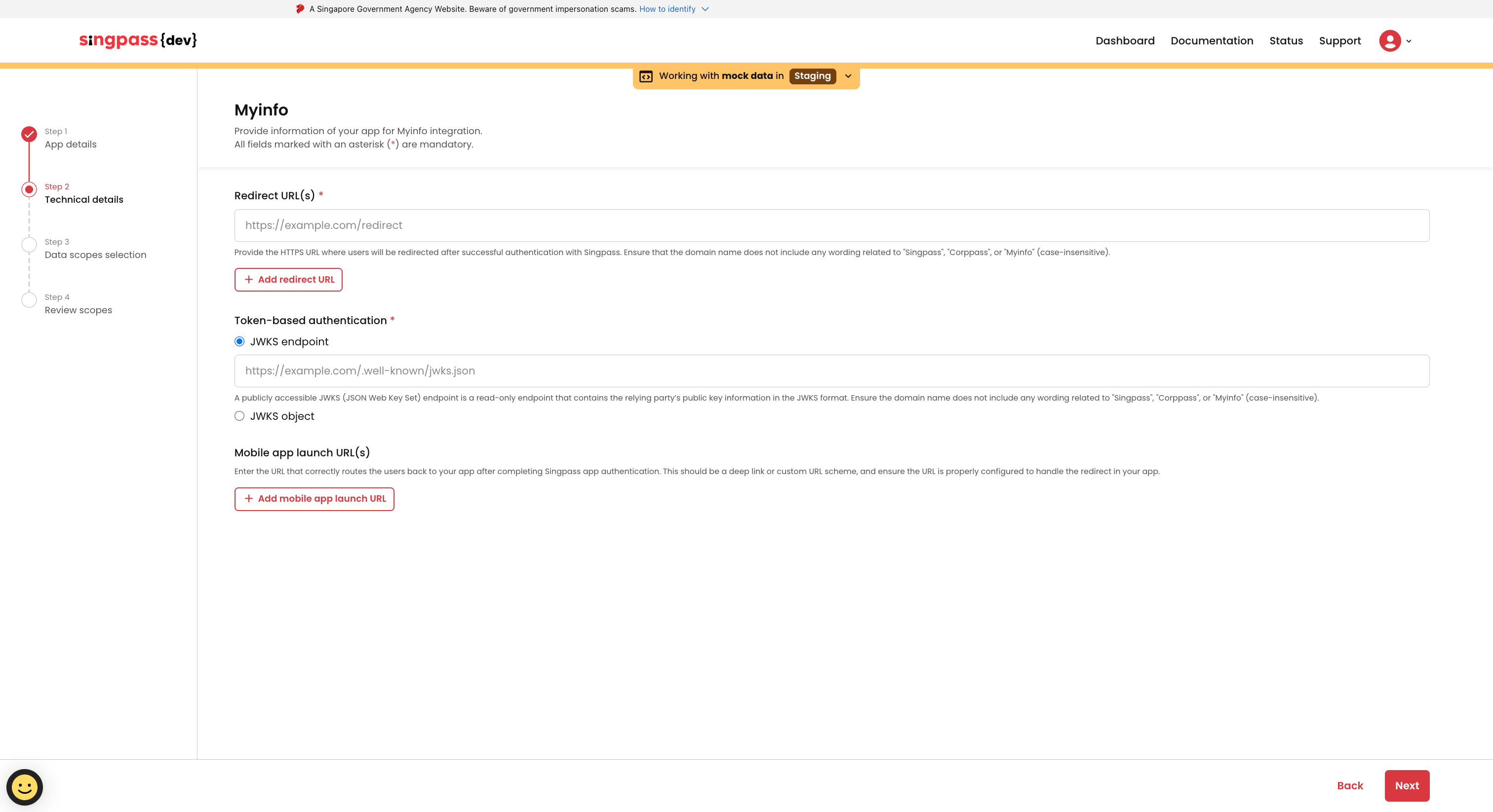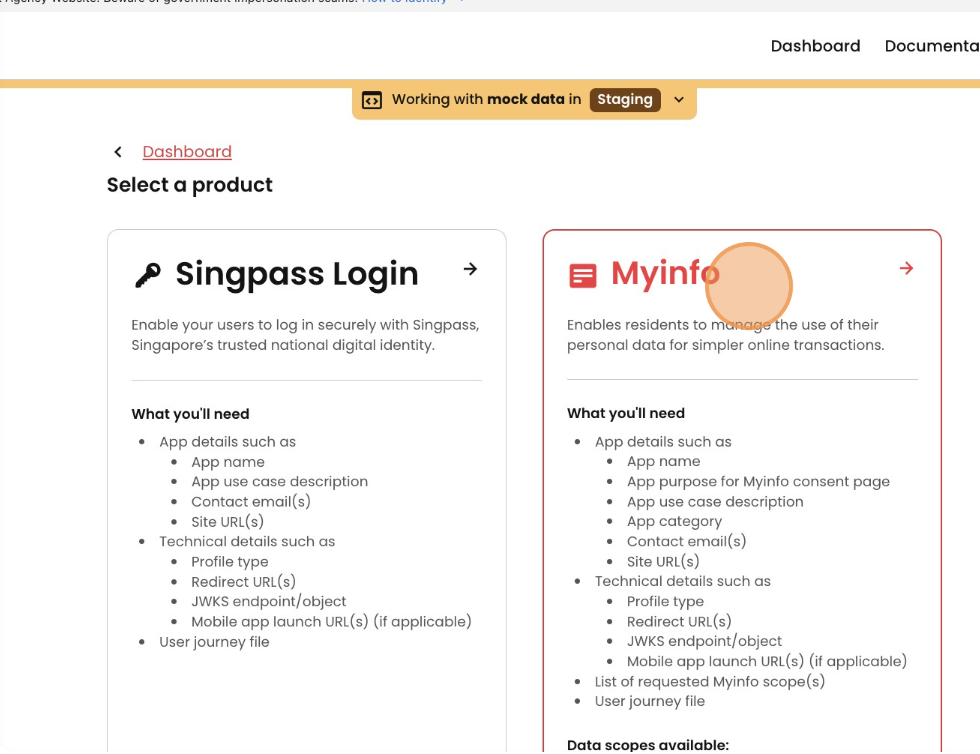 * Ensure you are logged in to the [Singpass Developer Portal](https://developer.singpass.gov.sg)